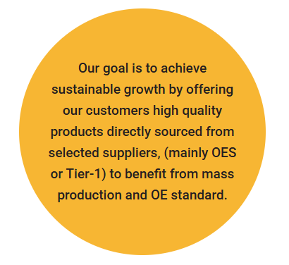 Our goal is to achieve sustainable growth by offering our customers high quality products directly sourced from selected suppliers, (mainly OES or Tier-1) to benefit from mass production and OE standard.